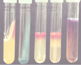 ブイヨンを用いる方法:MR-VPブイヨン→微量菌接種→A液B液(激しく混和・斜面位30分)にて反応を見る。