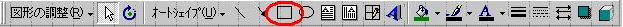 5. 次に文字を書いて見ましょう。現在は先の状態と同じ状態になっているものとします。 もし、何かのはずみで下図のようになっていたら四角の枠を左クリックして状態(図形の周辺に印がいくつか付いています)を戻します。