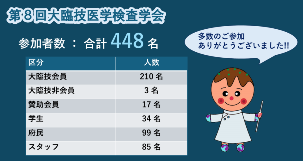 2026年2月15日に開催いたしました「第8回大臨技医学検査学会」におきましては、格別のご指導ならびにご支援を賜り、誠にありがとうございました。